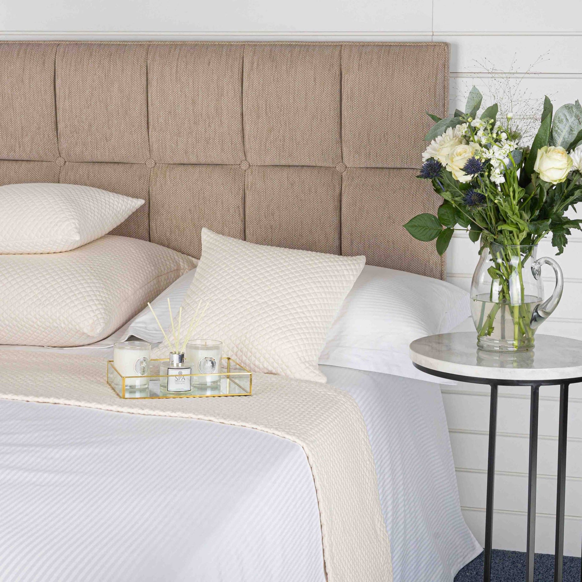 We love the incredibly simple and plump texture of these Diamond Weave Bed Runners and Cushions.