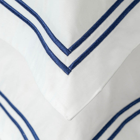 Satén de algodón PIMA de 750 hilos con cordón azul marino de 2 hileras - Funda de almohada