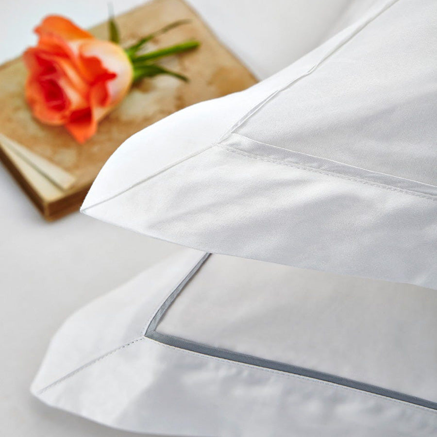 Satin égyptien 300 fils - Taie d'oreiller - Garniture grise