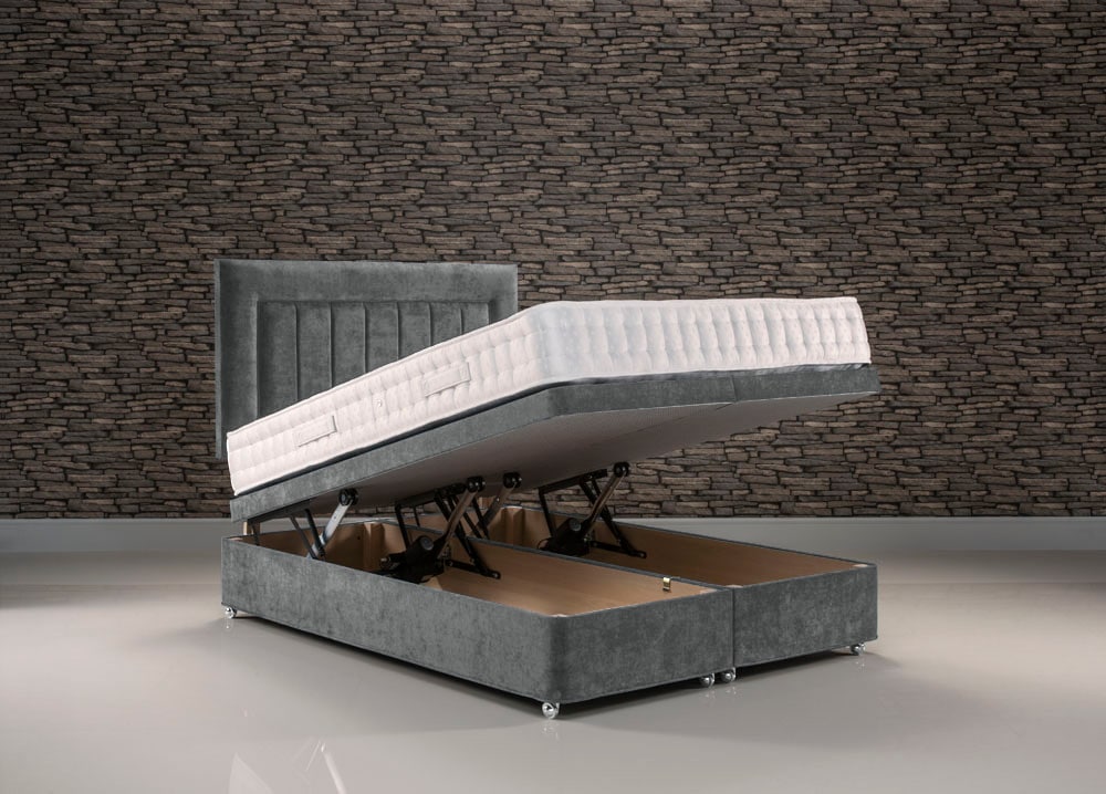 La solution de rangement parfaite pour vos pièces. La ligne Ottoman est dotée d'une ouverture latérale ou d'une ouverture d'extrémité. Le mécanisme est actionné par des vérins à gaz pour un levage facile.