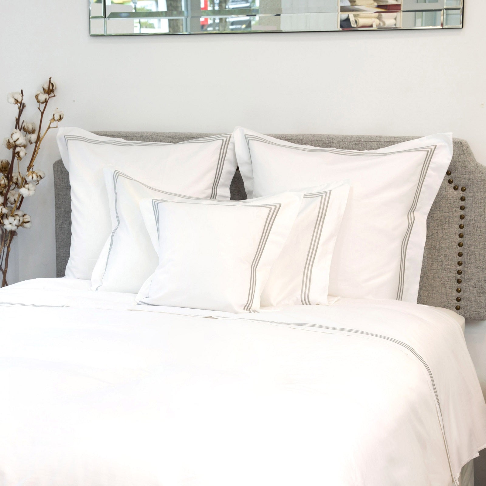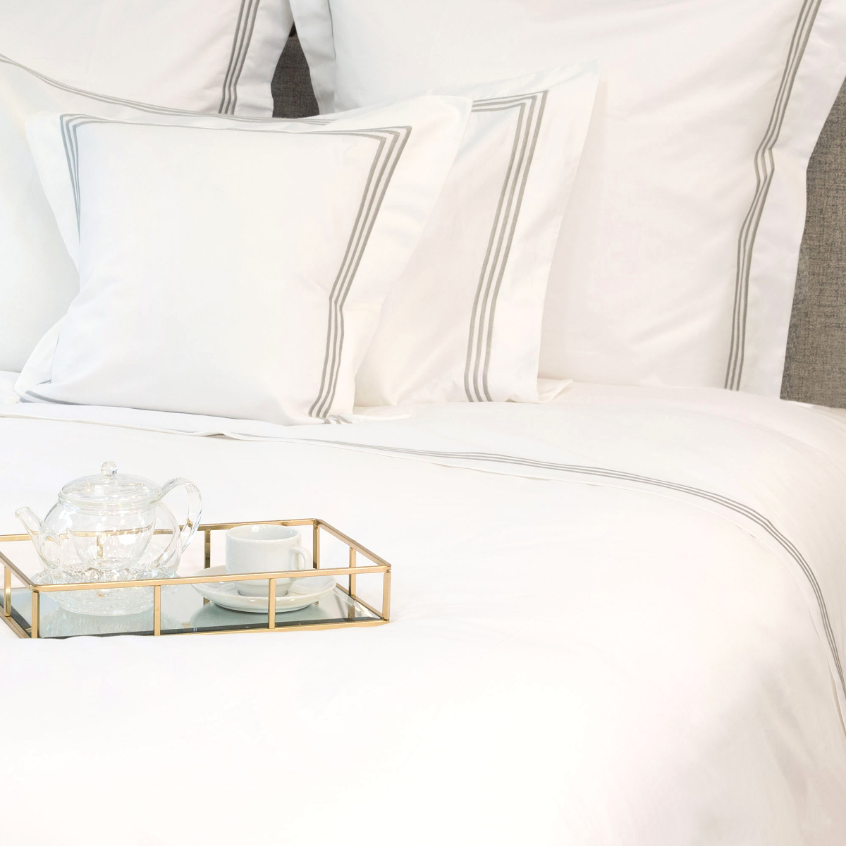 Milano Egyptian 800 Thread Cotton - White with Light Grey Three Row Cord - Duvet Cover